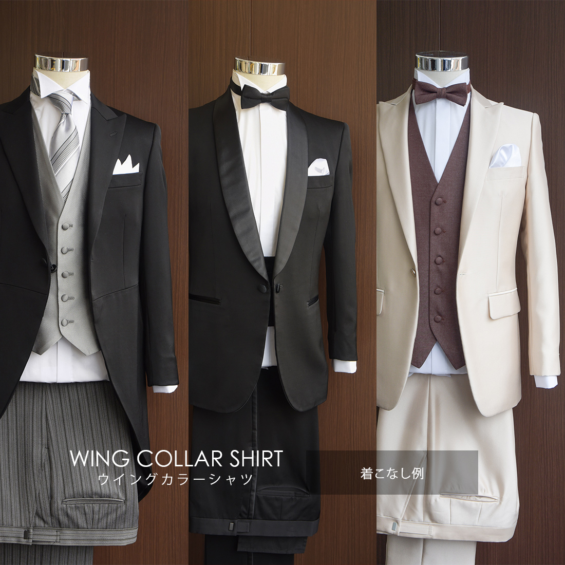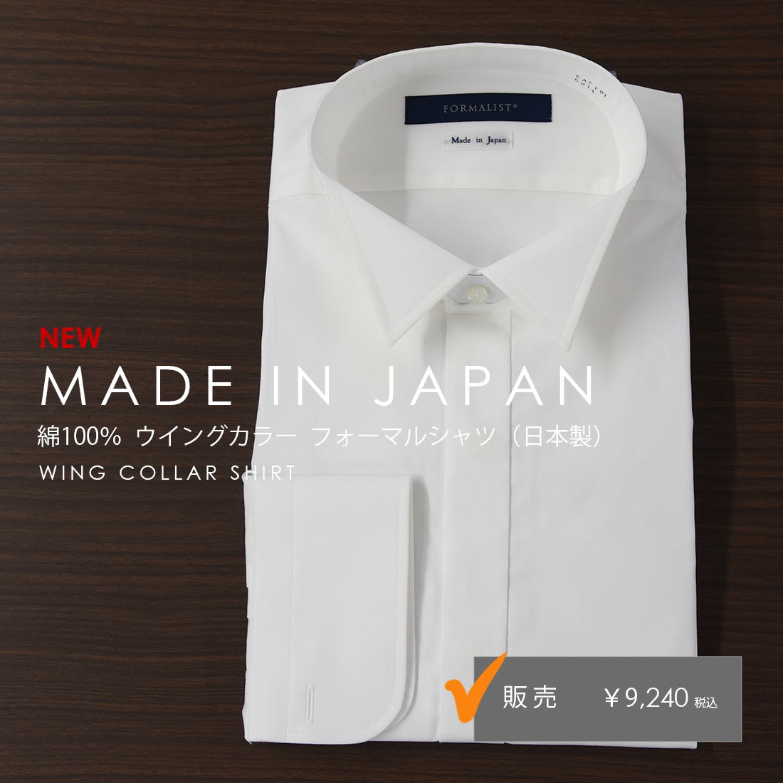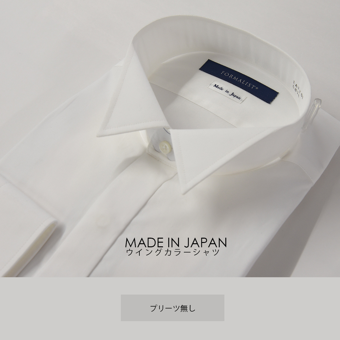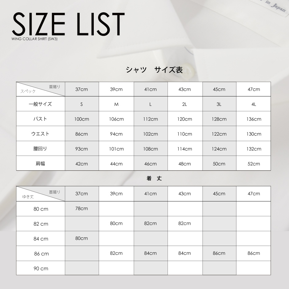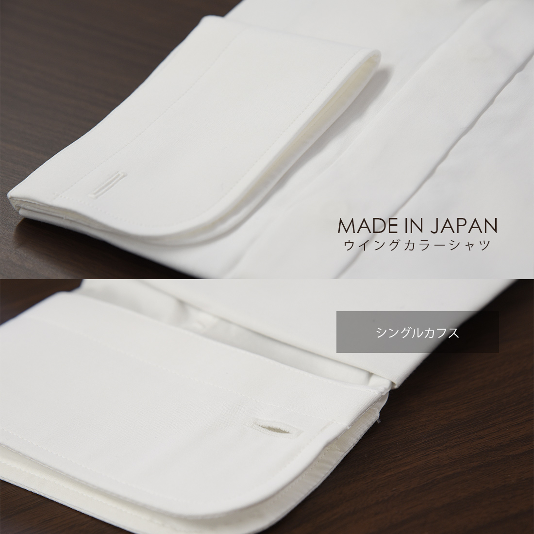 白のウイングカラーシャツ、タキシードステーションオリジナルの定番アイテムが綿100%の日本製なって新登場。定番のタキシードから新郎の着こなし、お父様モーニングにも最適なフォーマルシャツです。シングルカフスのデザインは、結婚式でもお召頂けますのでご安心ください。ゆき丈が合わないお客様は長い方をご選択頂き、アームバンドの追加をお勧めいたします。