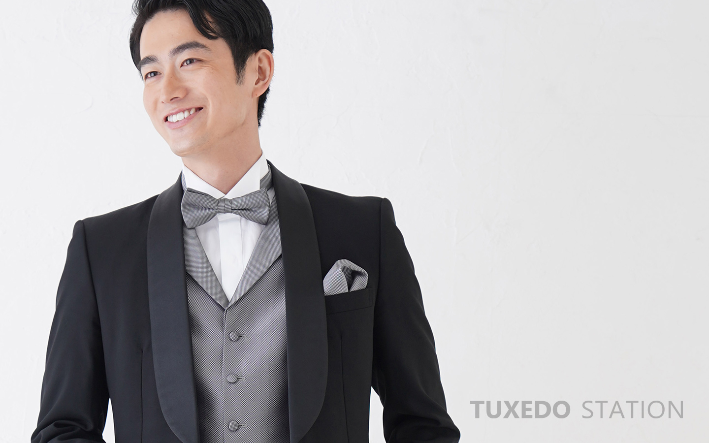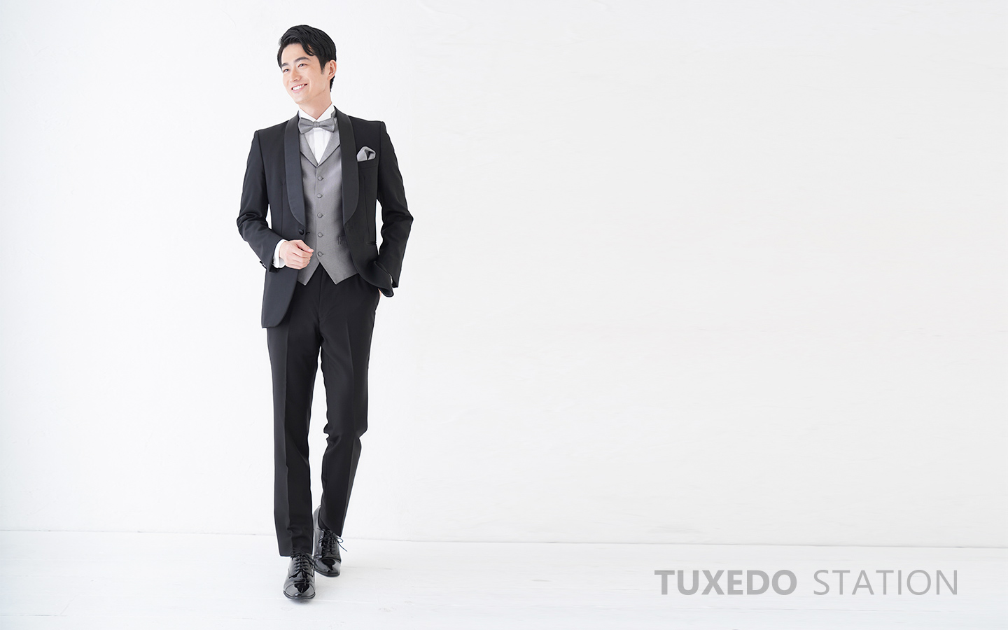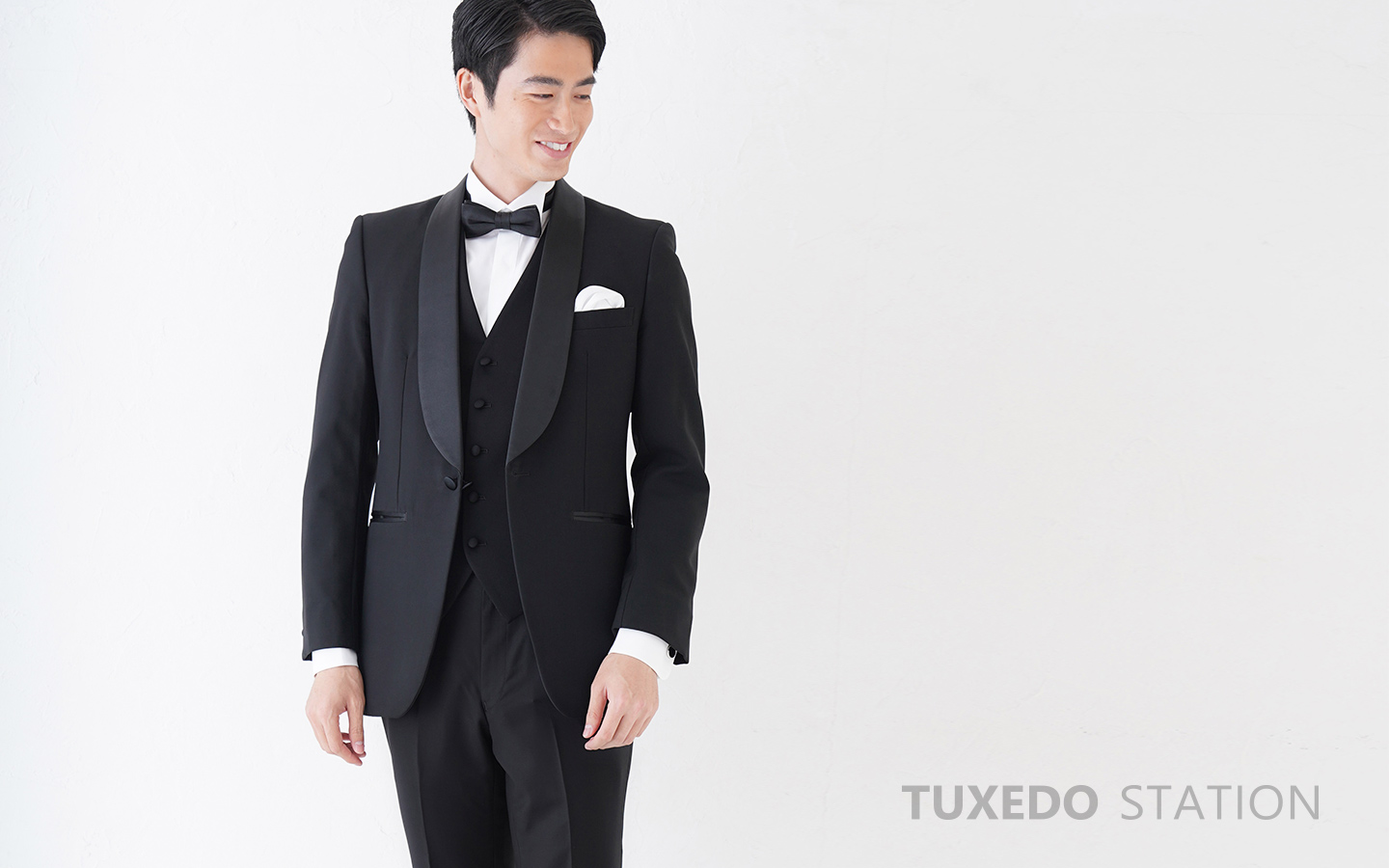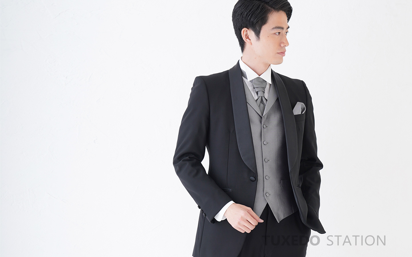 タキシードステーションのオリジナルウール100%、お客様によって様々なイメージでコーディネート出来るショールカラーのタキシードです。