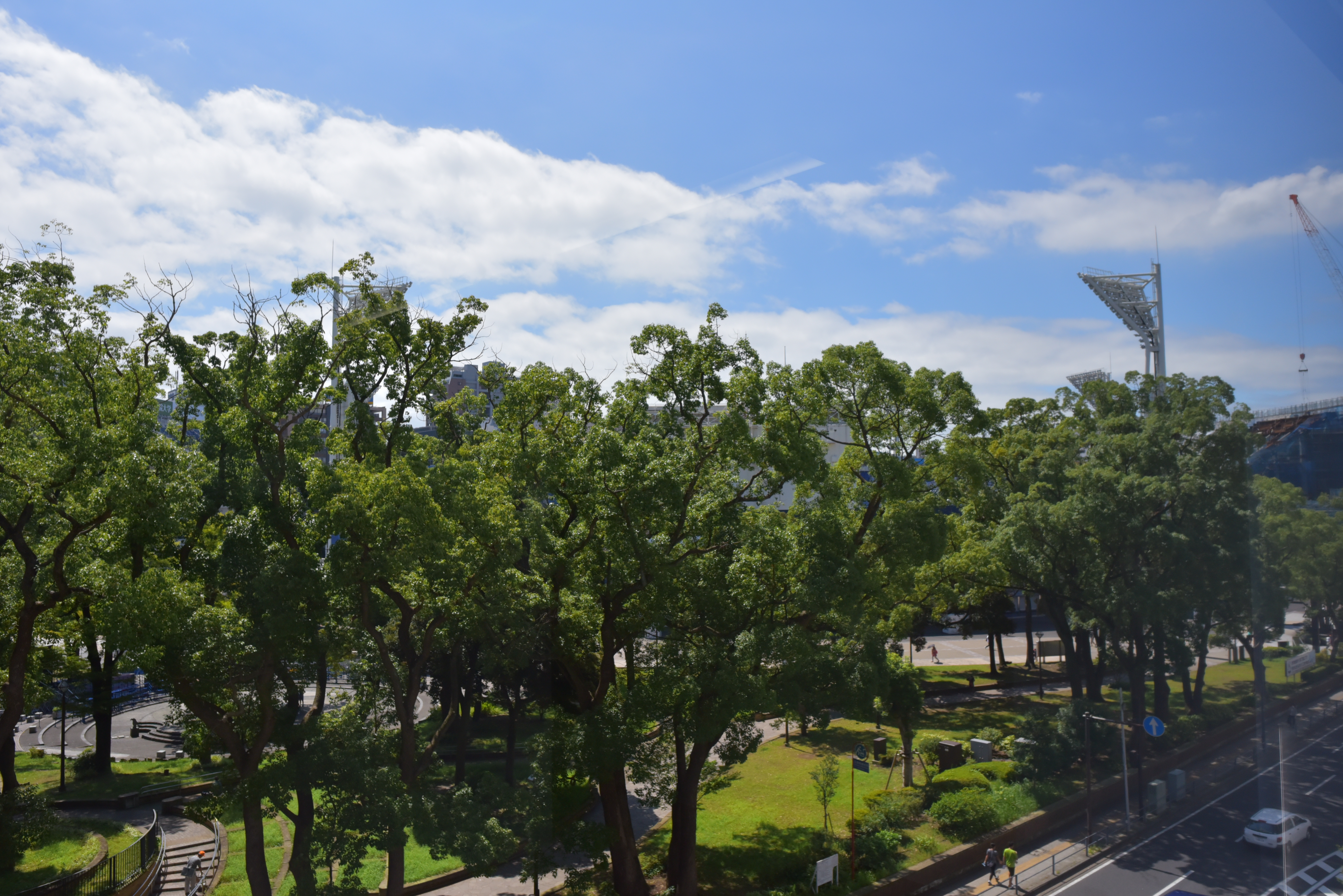 5階からの景色は、スタジアムが樹木で覆われてしまい、一望どころか全然スタジアムが映エない。