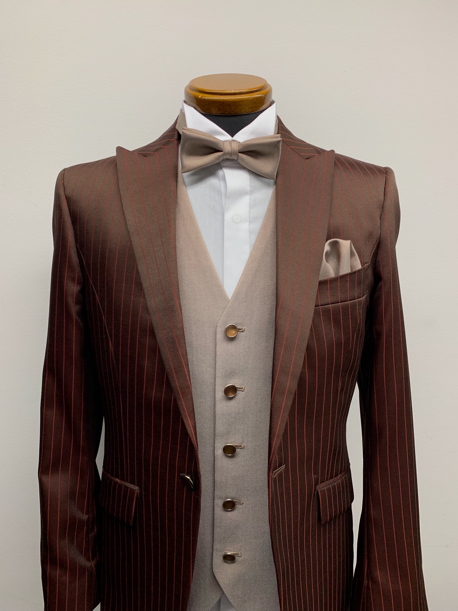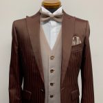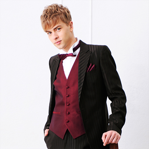 ジャケットがストライプ柄になるので、ベストは柄が無いようにしてみました。