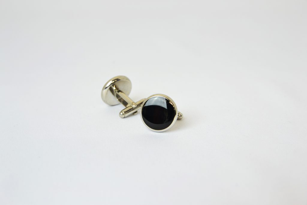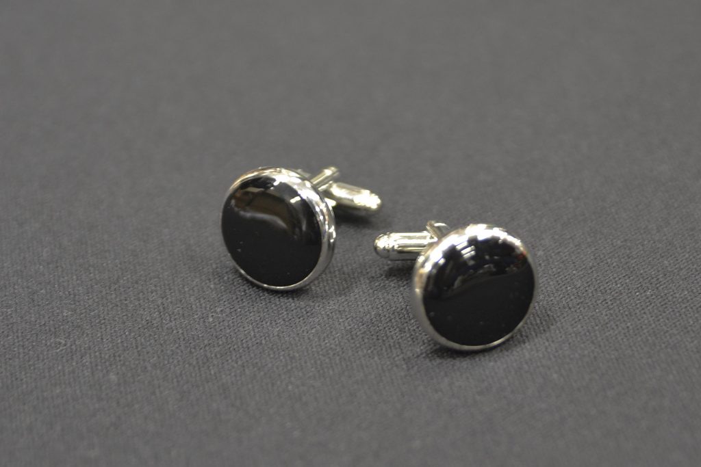 タキシード(ブラックタイ)の場合のカフスボタンは黒のオニキスが一般的です。