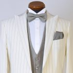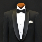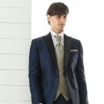 ブラックタイと言われる黒タキシードに黒蝶ネクタイに白ポケットチーフの組み合わせはもちろん、今1番人気のネイビータキシードに合わせてもステキです(*’▽’)