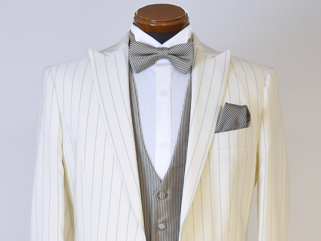 ブラックタキシードのインナーとしては王道カラーですが、色直し用にも人気です♪