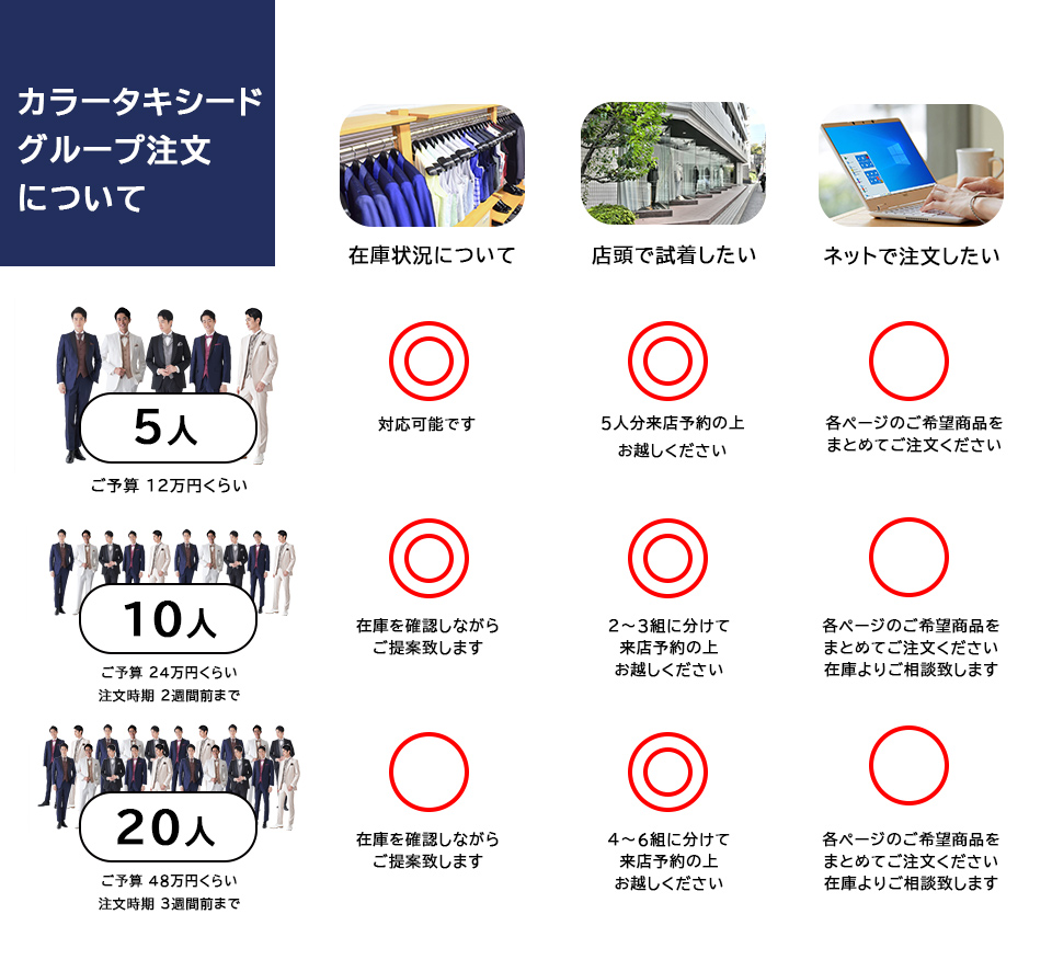 カラータキシード 5~20名