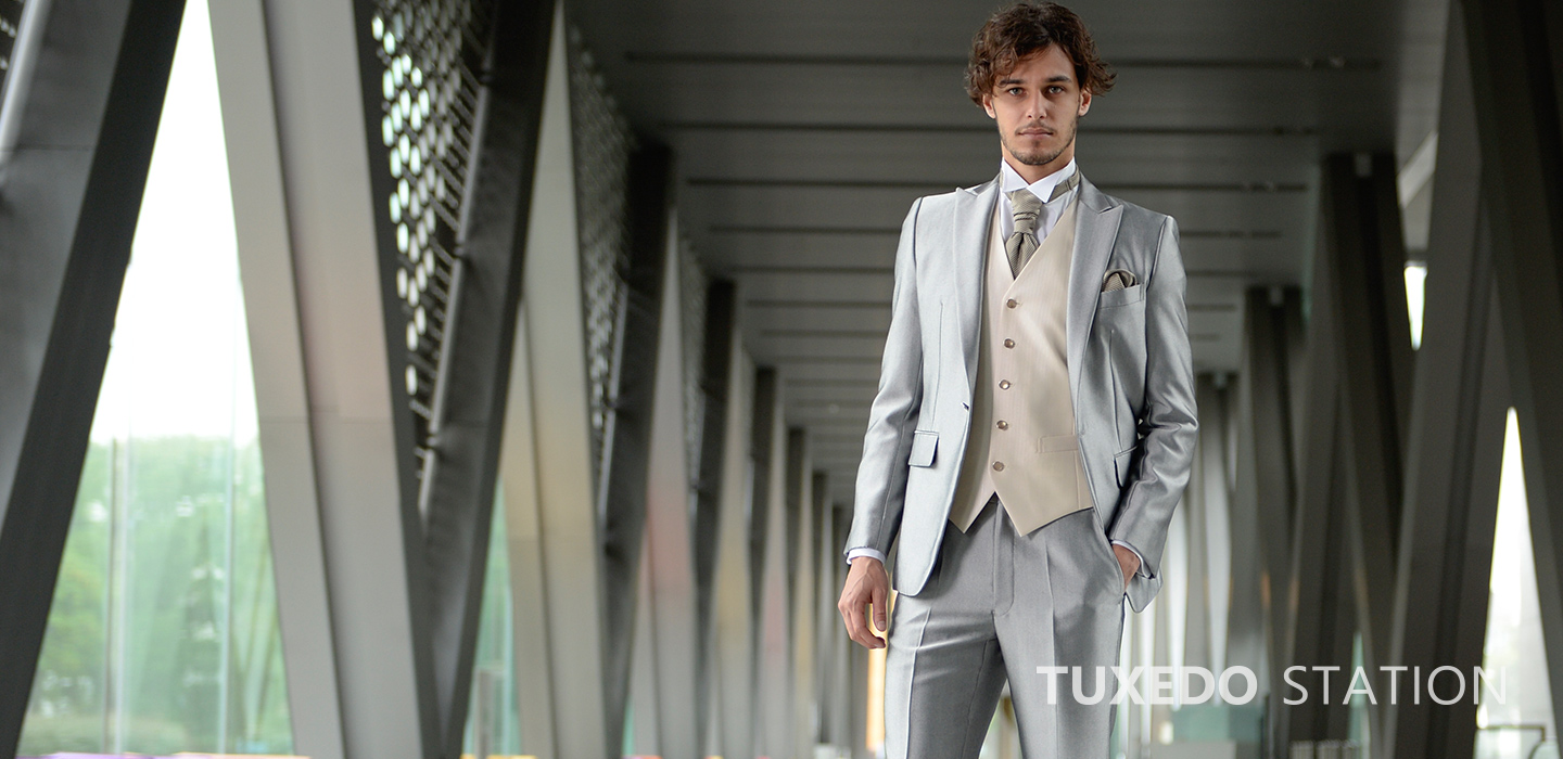 待望のスリムシルエットがタキシードステーションに登場。フィットした肩回りと強調されたウエストシェイプ、ノータックで足長効果のあるパンツシルエットまでこだわりました。