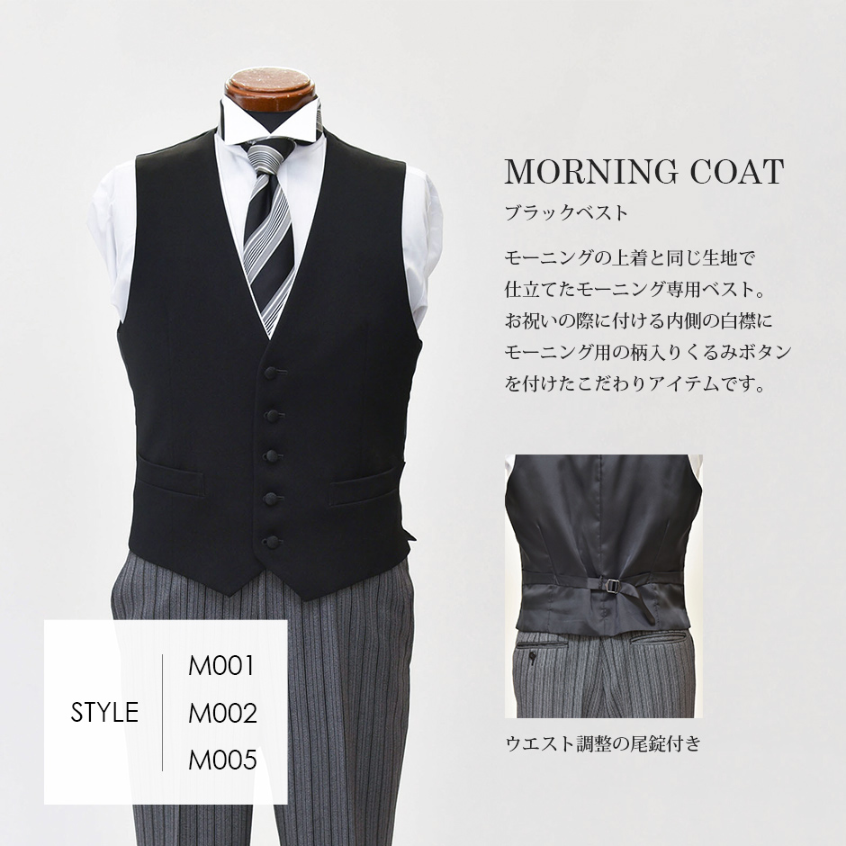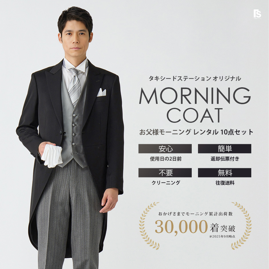 タキシードステーションオリジナル お父様モーニングコート レンタルセット 選べる6スタイル(黒ベスト・グレーベスト・黒ネクタイ・グレーネクタイ・ライトグレーネクタイ)