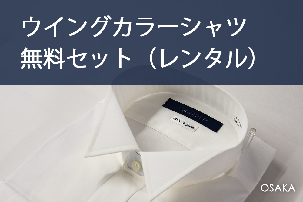 ブライダルショップで新郎タキシードをレンタルすると、ウイングカラーシャツは別途購入が必要で10,000円が相場です。タキシードステーションなら日本製 綿100%の高級ウイングカラーシャツが、無料セットでレンタル出来ます。