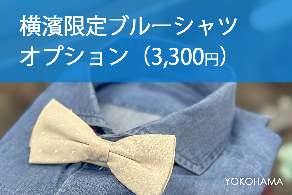 横濱ベイスターズの優勝を記念して、タキシードステーション横浜店では。店舗限定のブルーシャツをラインナップ。是非この機会に、新郎タキシードの試着でお洒落に着こなしをしてみては。