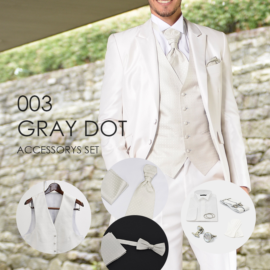 ベスト・タイ・チーフ、シャツ小物(レンタル)グレー水玉