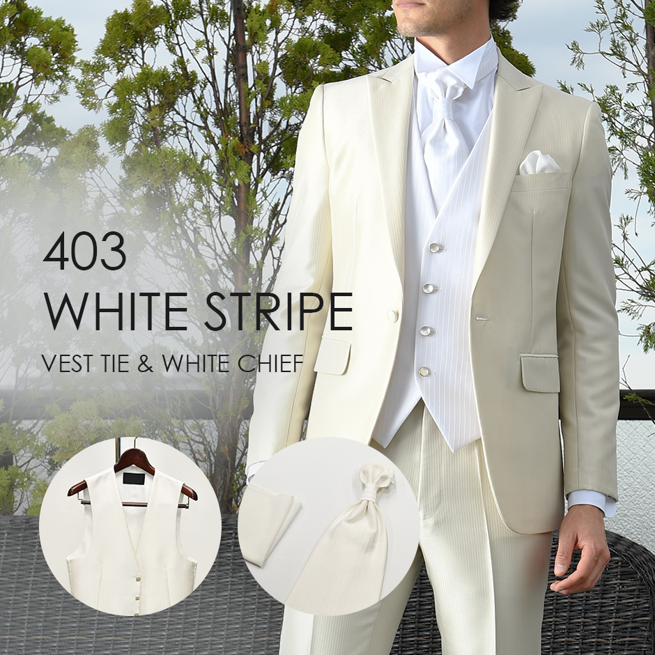 ベスト・タイ・ポケットチーフ(レンタル)ホワイトストライプ
